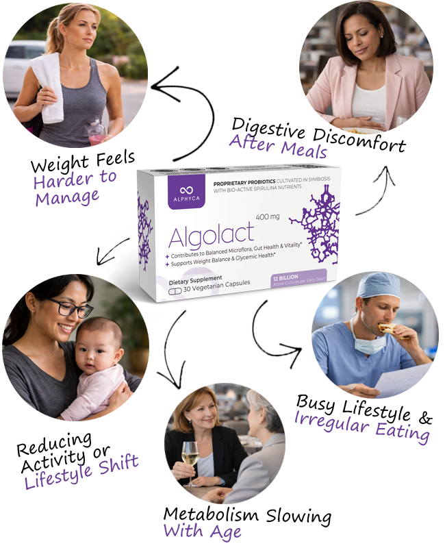 ALGOLACT Alphyca® is designed for adults who want support for healthy weight maintenance, metabolic balance, and digestive health through targeted probiotic support.
